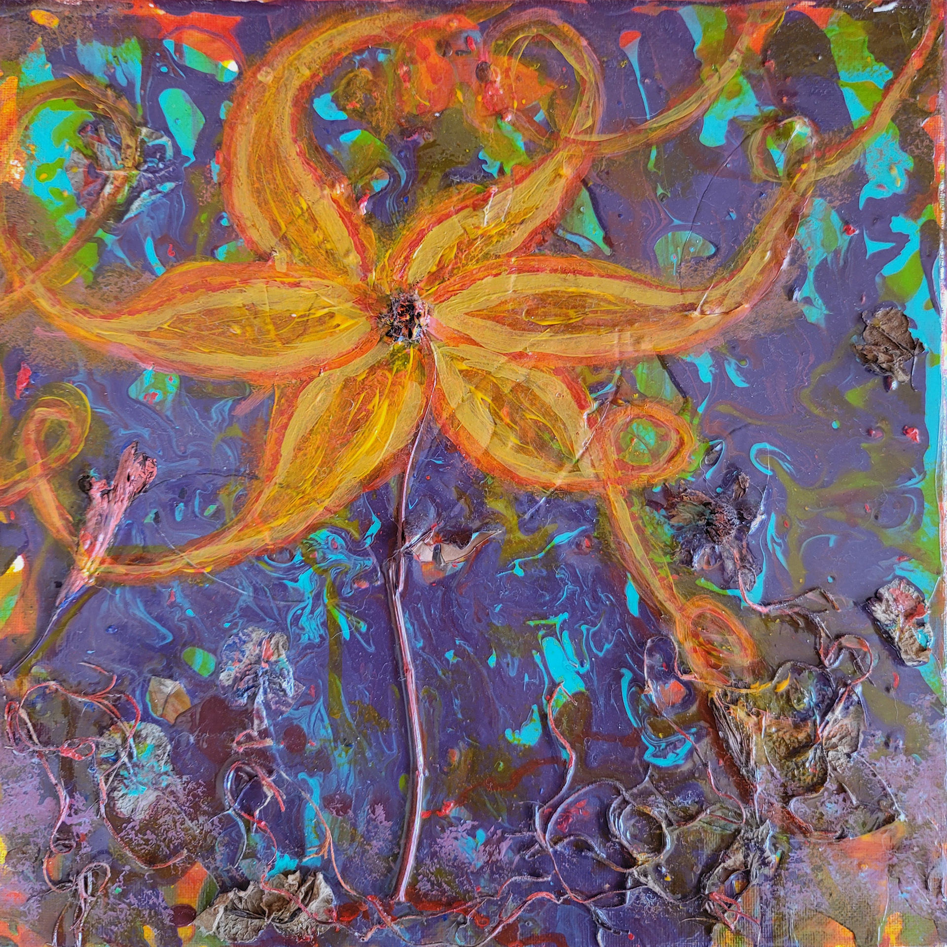Acrylic pour on canvas, mixed media